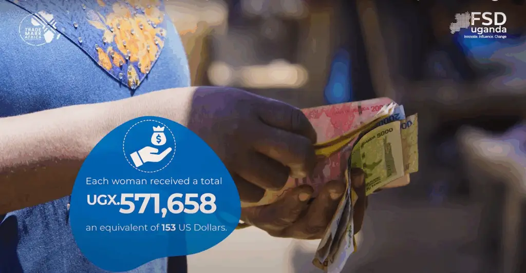In 2023, the Financial Sector Deepening Uganda, in partnership with TradeMark Africa and 100WEEKS, participated in an initiative to provide informal cross-border women traders at the Elegu border town with unconditional cash transfers alongside training in business and entrepreneurship. The project aimed at offering relief to women cross-border traders whose trade suffered due to the closure of borders and nationwide lockdowns at the height of the COVID-19 pandemic and lost their businesses and incomes. Relief in form of a cash transfer was disbursed to just over 500 women in three instalments. Each woman received a total of Ush571,658 (US$153). The women also could voluntarily attend any of the three financial literacy trainings provided.